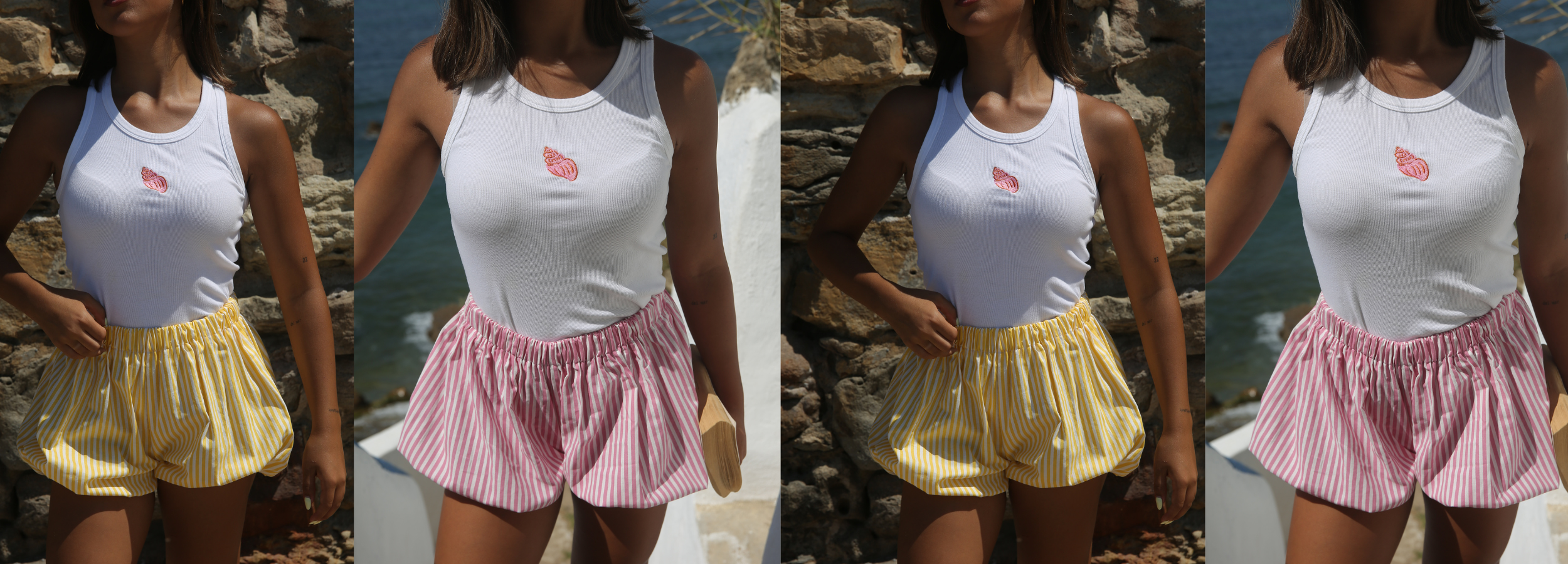 Be the first to get your hands on the limited-edition Riviera Balloon Shorts — handmade with love, only available for a short time. Perfect your summer wardrobe with this playful pink-and-white striped design from the Club Soleil collection.